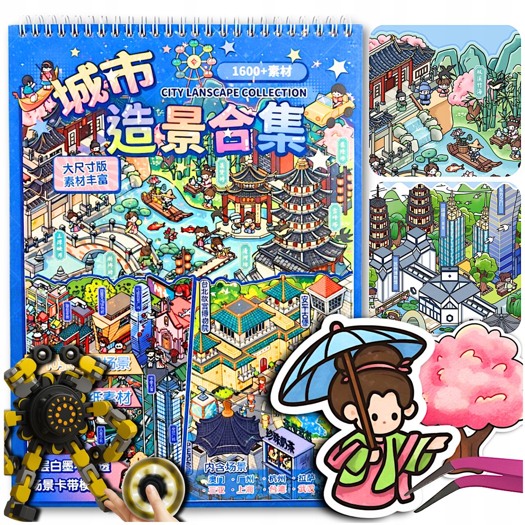 Ten unikalny zestaw naklejek do stworzenie Azjatyckich miast, idealna na każdą okazję. Zawiera 20 arkuszy naklejek PET oraz 10 szczegółowych szablonów scen, które pozwalają na tworzenie własnych, miniaturowych miast 3D. Zestaw, zapakowany w twardą oprawę i z dołączoną pęsetą do precyzyjnego montażu, doskonale rozwija kreatywność i działa antystresowo, zapewniając godziny relaksującej zabawy.