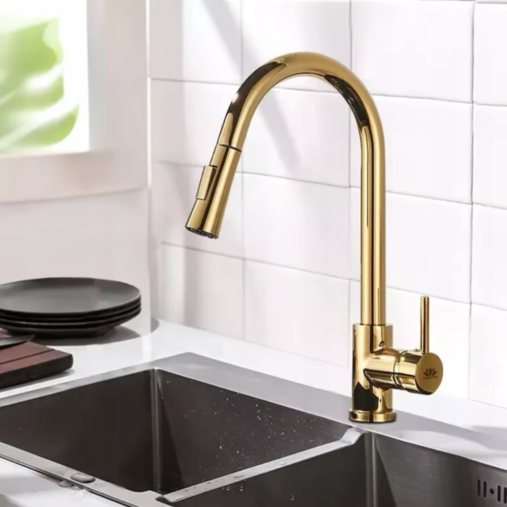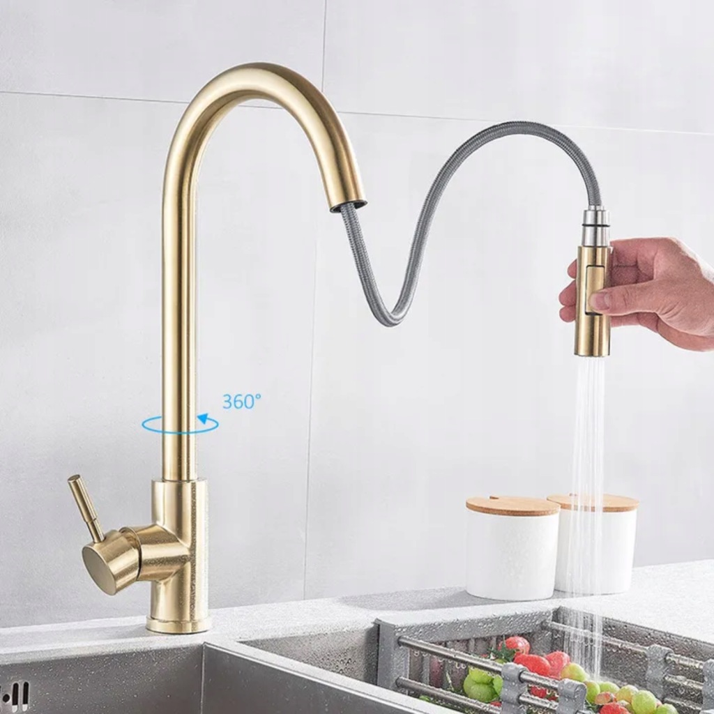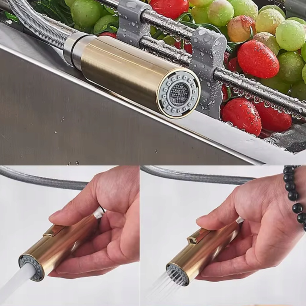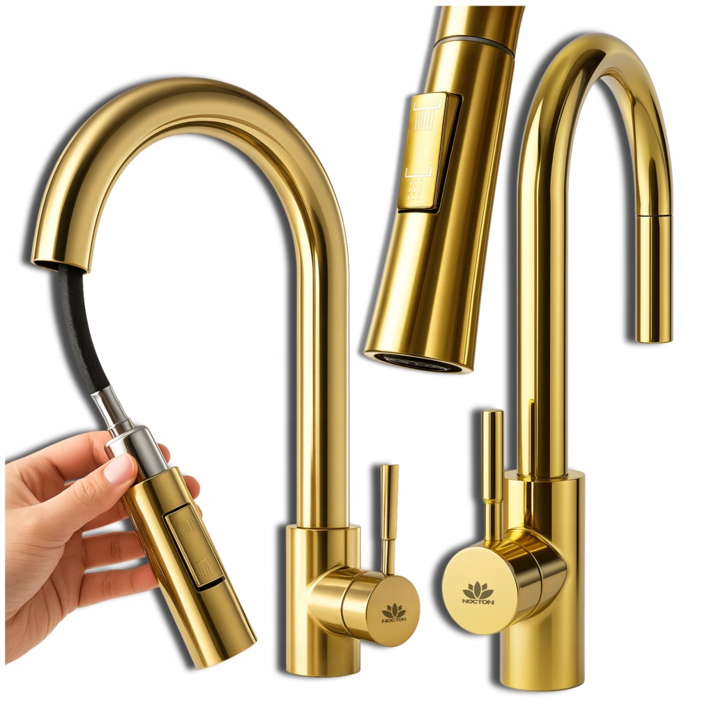✅ Funkcje: Wyciągana i wysuwana wylewka, obrotowy korpus (360°), przełącznik strumienia (tryb prysznicowy/ciągły)