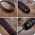 Zestaw zawiera również skakankę wyposażoną w wygodne, ergonomiczne rączki pokryte miękką pianką, która zapewnia pewny chwyt i komfort nawet podczas dłuższych treningów. Wbudowane łożyska w uchwytach gwarantują płynny, szybki obrót linki bez plątania i szarpania, co przekłada się na efektywniejsze spalanie kalorii. Dodatkowo możliwość łatwego skrócenia długości skakanki pozwala idealnie dopasować ją do wzrostu użytkownika – zarówno dorosłych, jak i młodszych osób.