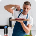 ✅ Precyzja dozowania dzięki oświetleniu LED – Wbudowane niebieskie diody LED włączają się podczas pracy, oświetlając potrawę i pozwalając na dokładne i równomierne rozprowadzenie przypraw.