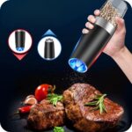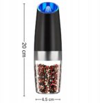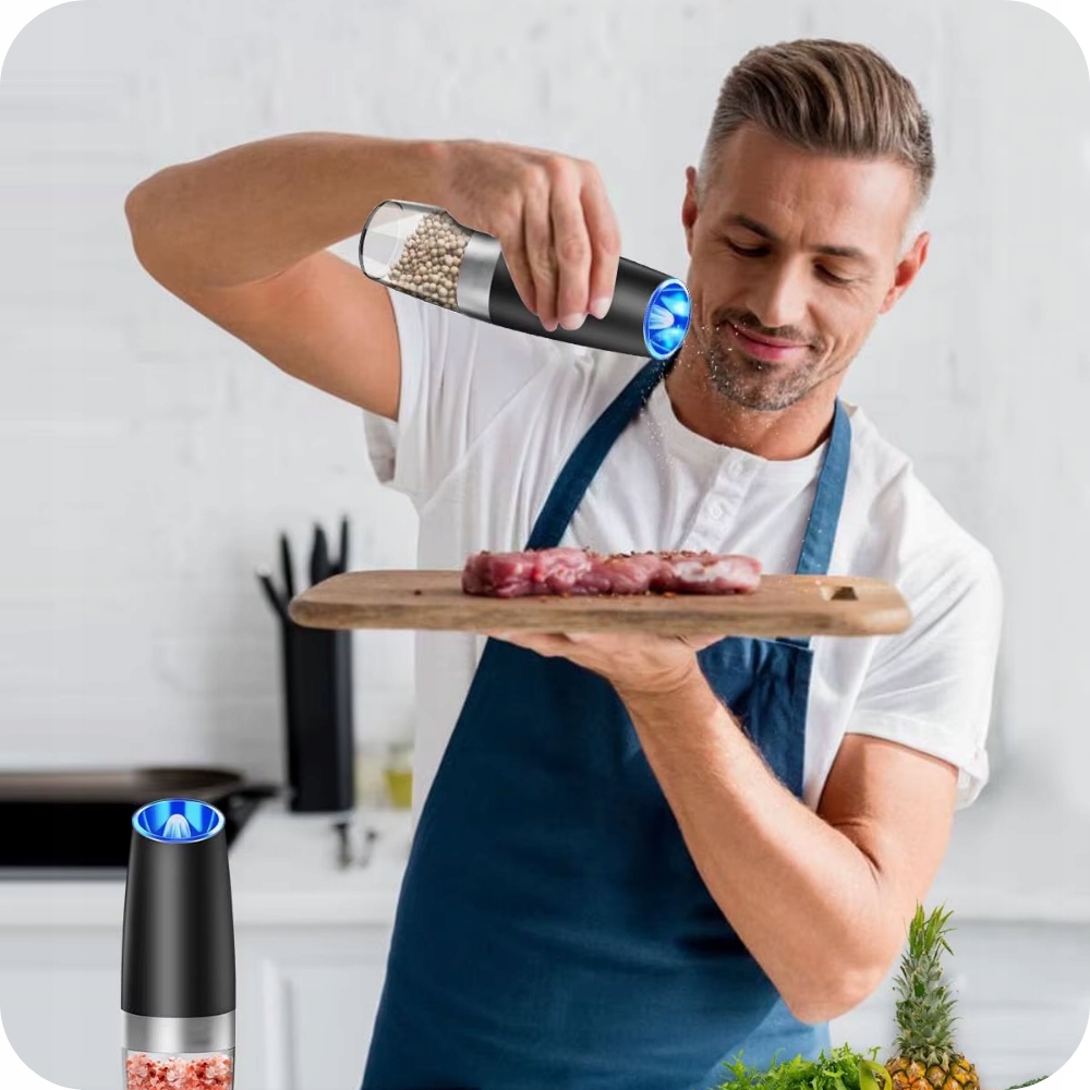 Ten elegancki zestaw 2 młynków do soli i pieprzu to innowacja w Twojej kuchni. Dzięki grawitacyjnemu mechanizmowi automatycznie mielą przyprawy, gdy je przechylisz, pozwalając na obsługę jedną ręką. Posiadają regulację grubości mielenia i podświetlenie LED, które zapewnia precyzyjne dozowanie. Solidnie wykonane z nowoczesnym designem, są idealne nie tylko do pieprzu i soli, ale także do innych suchych przypraw.