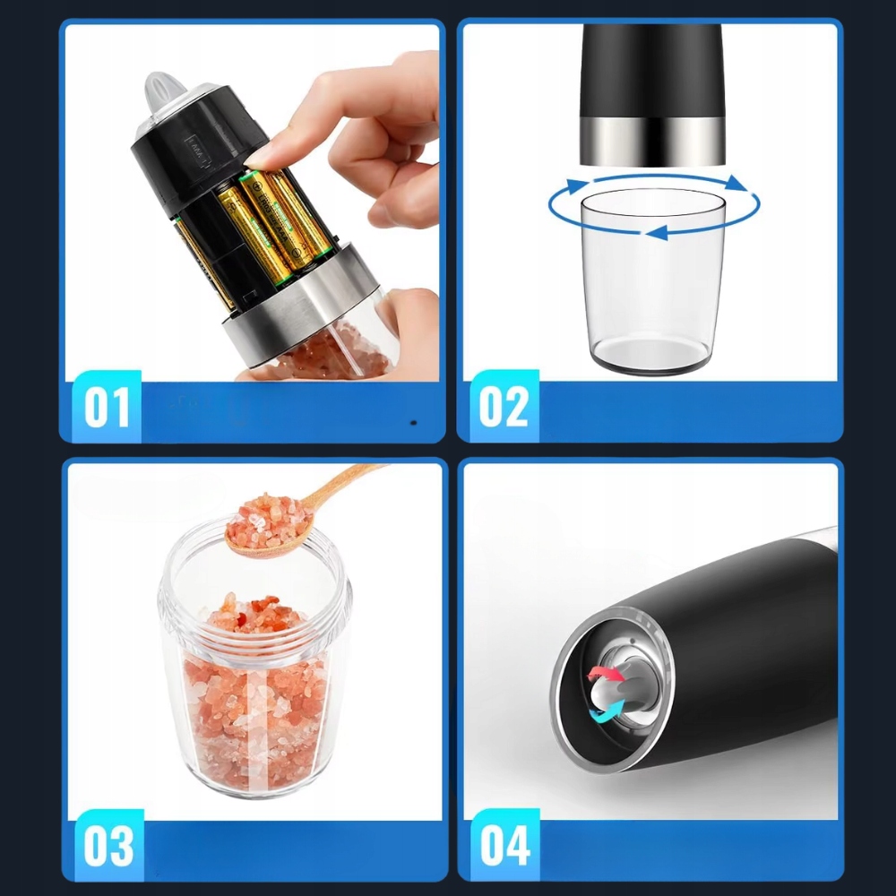 ✅ Typ produktu: Zestaw 2 elektrycznych młynków do soli i pieprzu