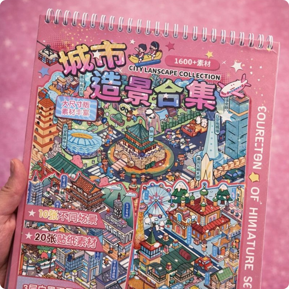 Ten unikalny zestaw naklejek do stworzenie Azjatyckich miast, idealna na każdą okazję. Zawiera 20 arkuszy naklejek PET oraz 10 szczegółowych szablonów scen, które pozwalają na tworzenie własnych, miniaturowych miast 3D. Zestaw, zapakowany w twardą oprawę i z dołączoną pęsetą do precyzyjnego montażu, doskonale rozwija kreatywność i działa antystresowo, zapewniając godziny relaksującej zabawy.