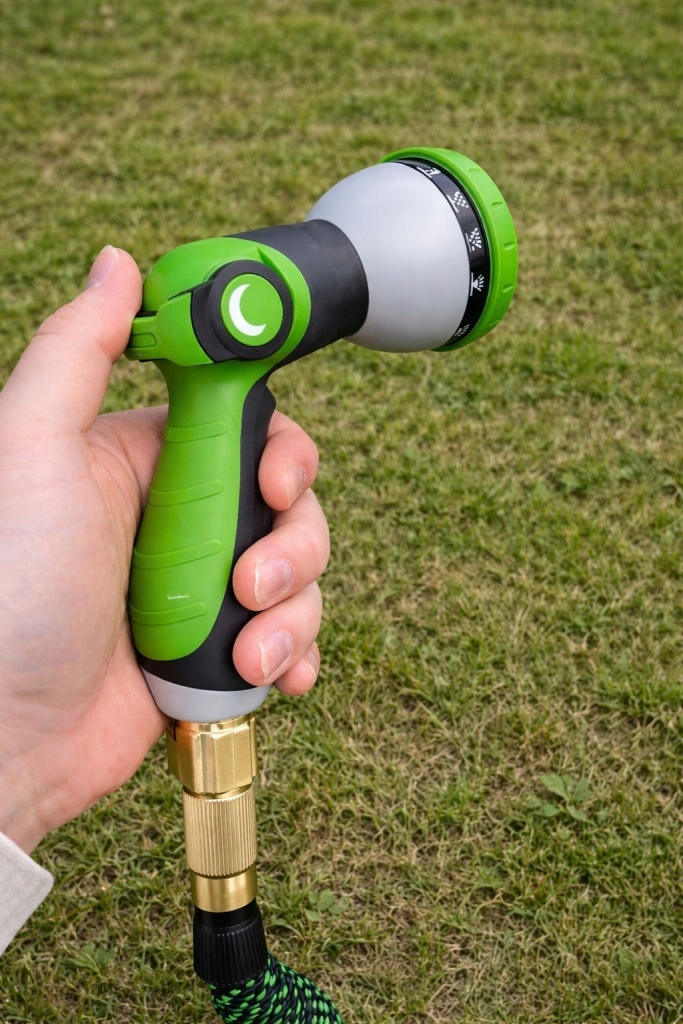 ✅ Pistolet zraszający z 10 trybami — umożliwia precyzyjne dopasowanie strumienia wody do różnych zadań: od delikatnej mgiełki po silne mycie.