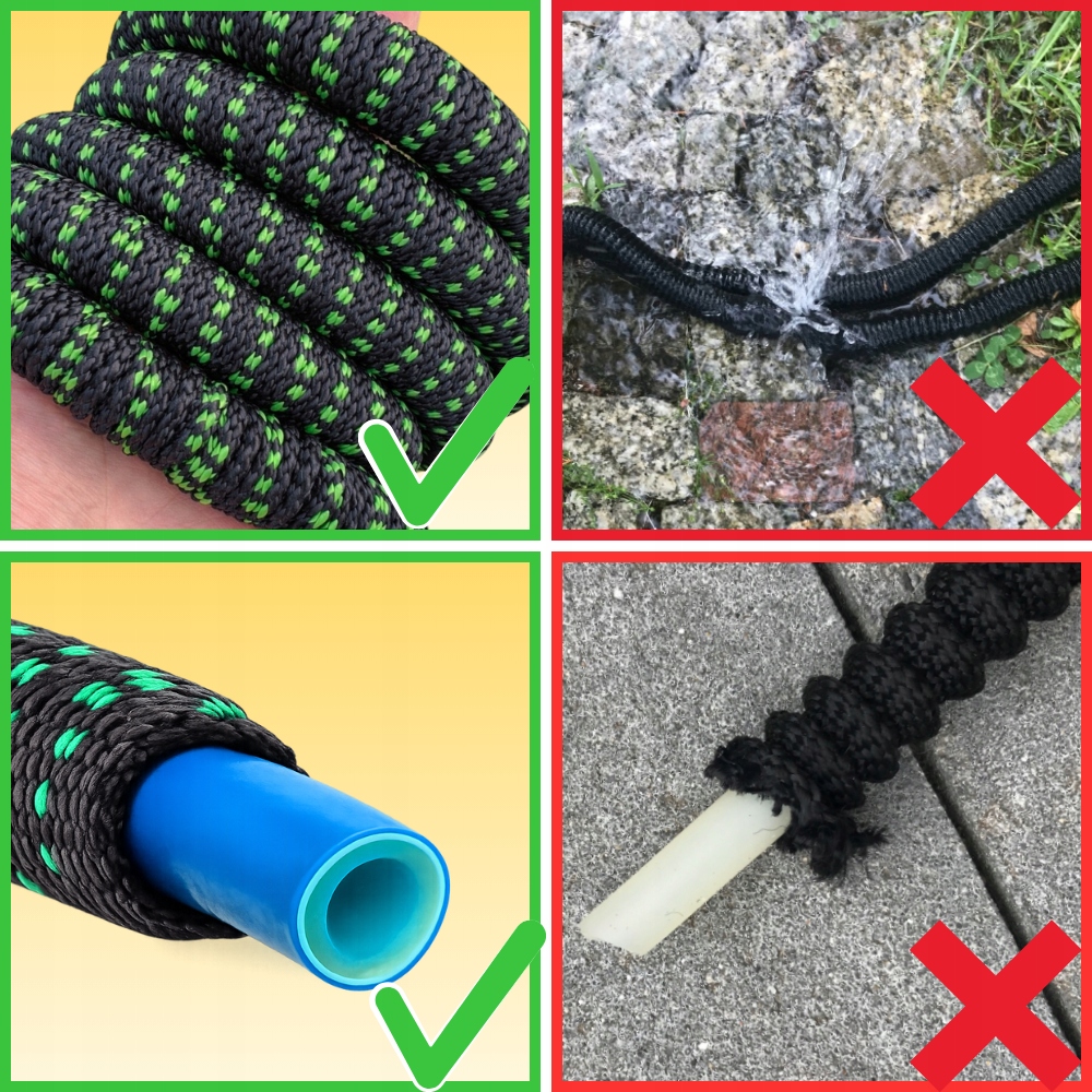 ✅ 3-warstwowy rdzeń węża — W wielu tanich wężach stosuje się cienką lateksową rurkę, która szybko się przeciera lub pęka. W naszym modelu zastosowano 3-warstwowy rdzeń o wysokiej elastyczności, który zapewnia znacznie większą odporność na uszkodzenia oraz dłuższą żywotność produktu. Dzięki temu wąż pozostaje elastyczny i zachowuje swoje właściwości nawet przy intensywnym użytkowaniu.